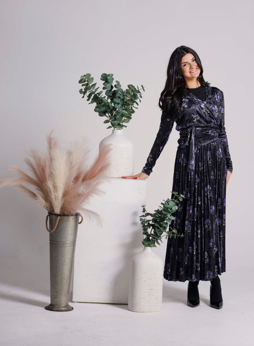 Velvet Printed Asymmetrical Dress 246